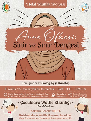 İslâm’ı yaşama hevesinde olan, yeni şeyler öğrenmeyi seven çocuklarımız ve annelerine yönelik olarak GİMDES Hanımlar Kurulu tarafından 13 Aralık Cumartesi günü atölye çalışması ve eğitim semineri düzenlenecektir.